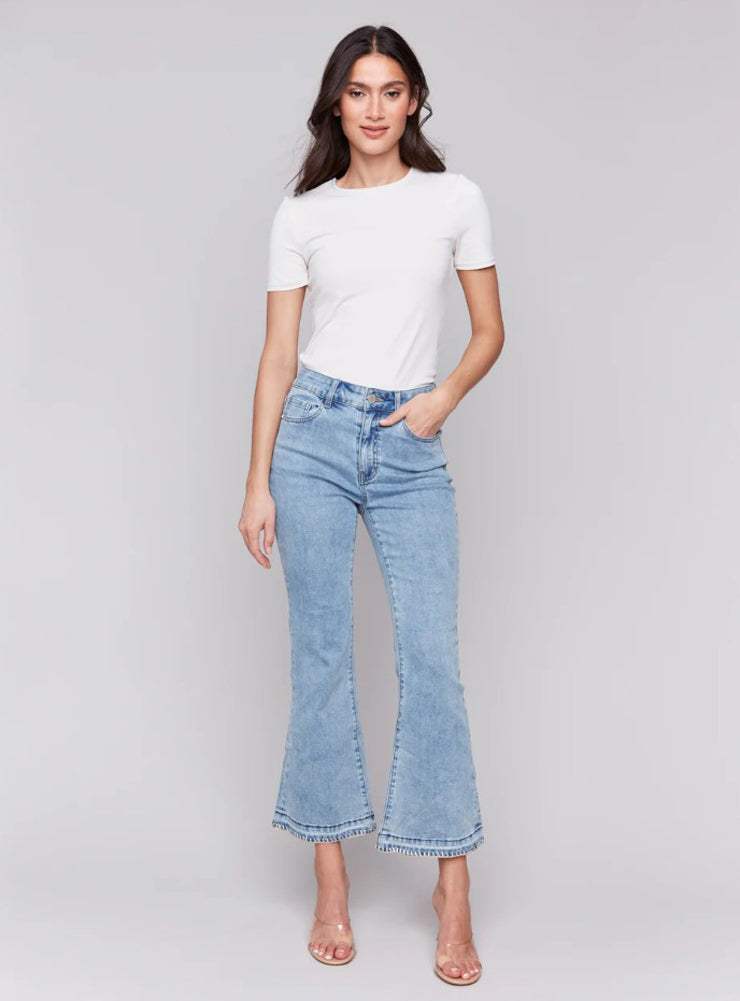 Blanket Stitch Straight Leg Pants in Light Blue by Charlie B