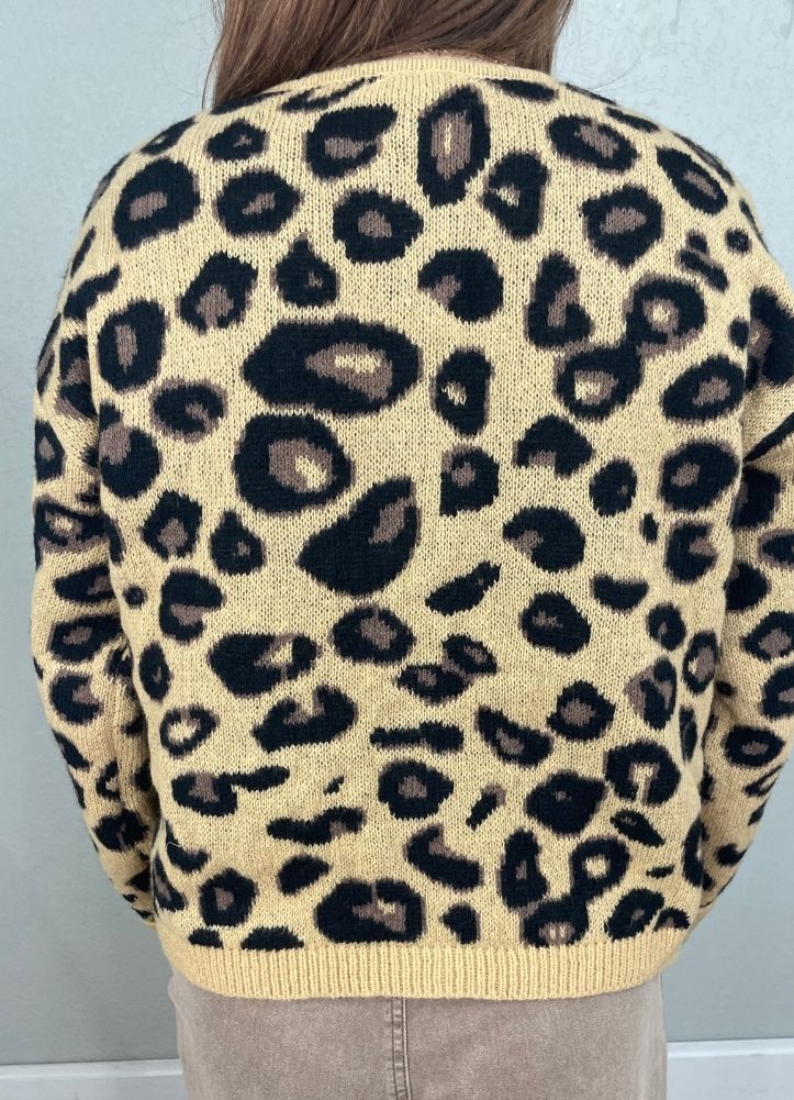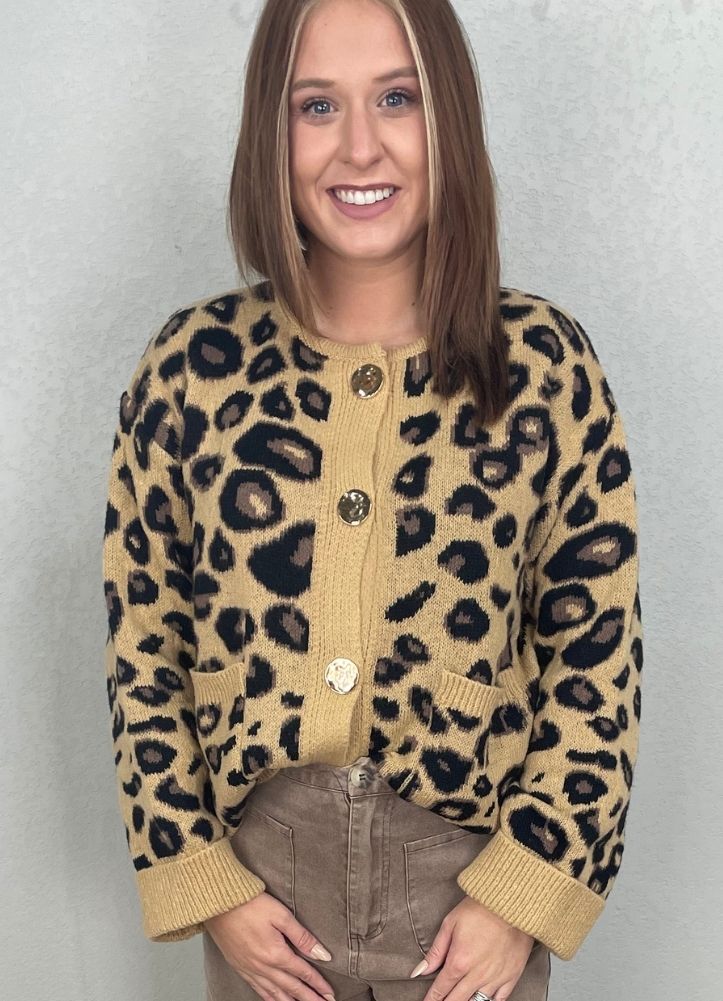 Leopard LS Cardigan with Gold Buttons in Camel by Entro