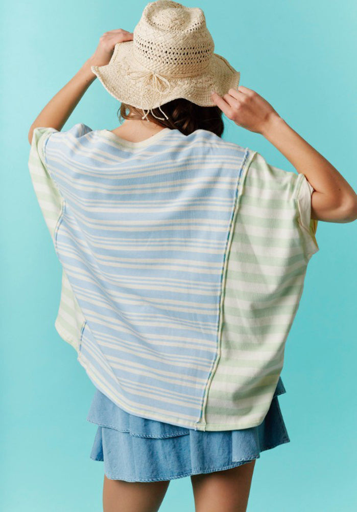 Stripe Colorblock Oversized Pocket SS in Blue/Lime by Fantastic Fawn