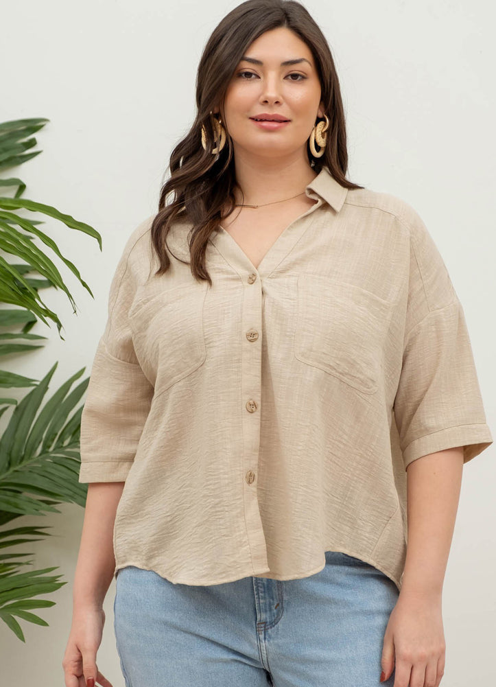 Plus Notch Collar LS Blazer in Khaki by Blu Pepper