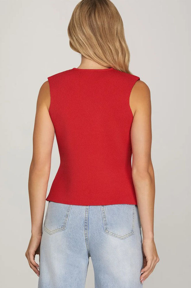 Sleeveless Gold Button Knit Sweater Vest in Red by She + Sky