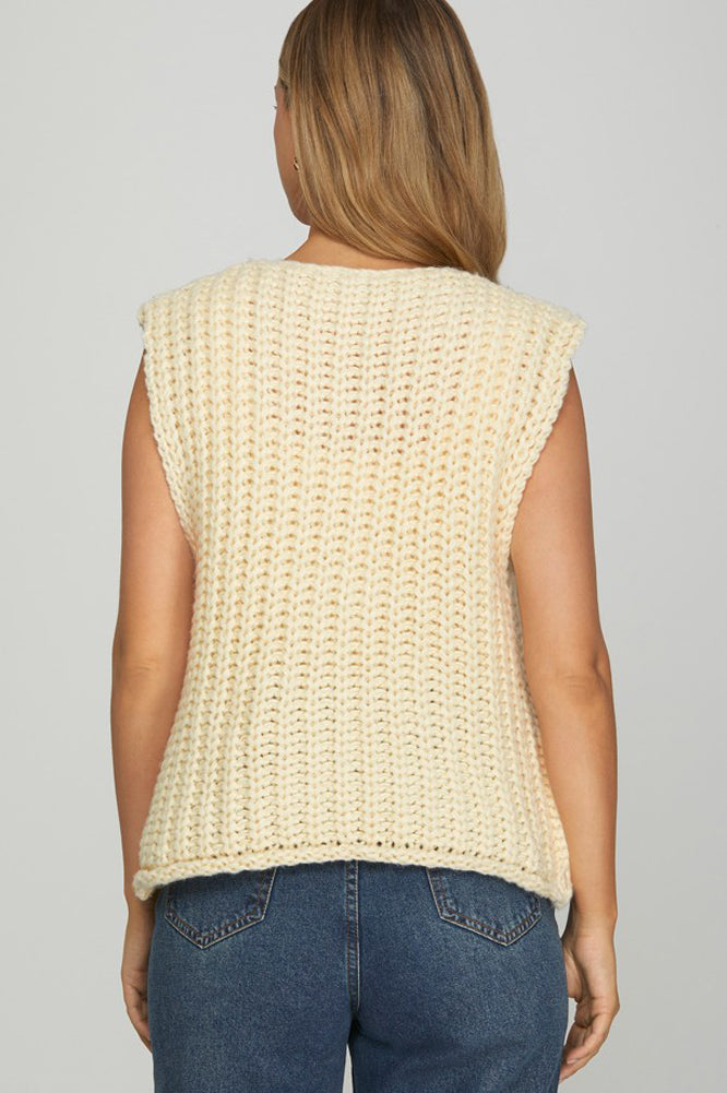 Sleeveless Chunky Sweater Vest in Cream by She + Sky