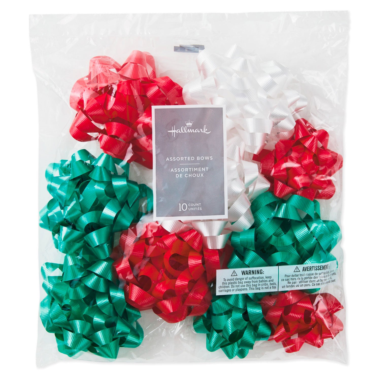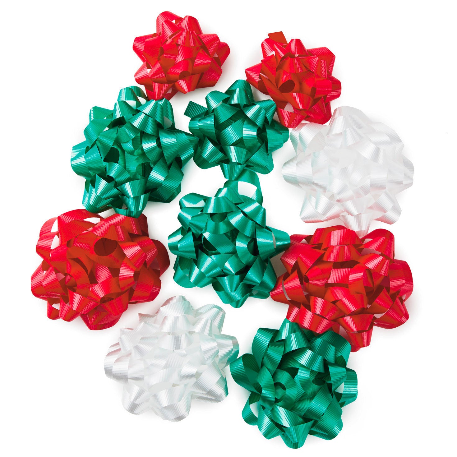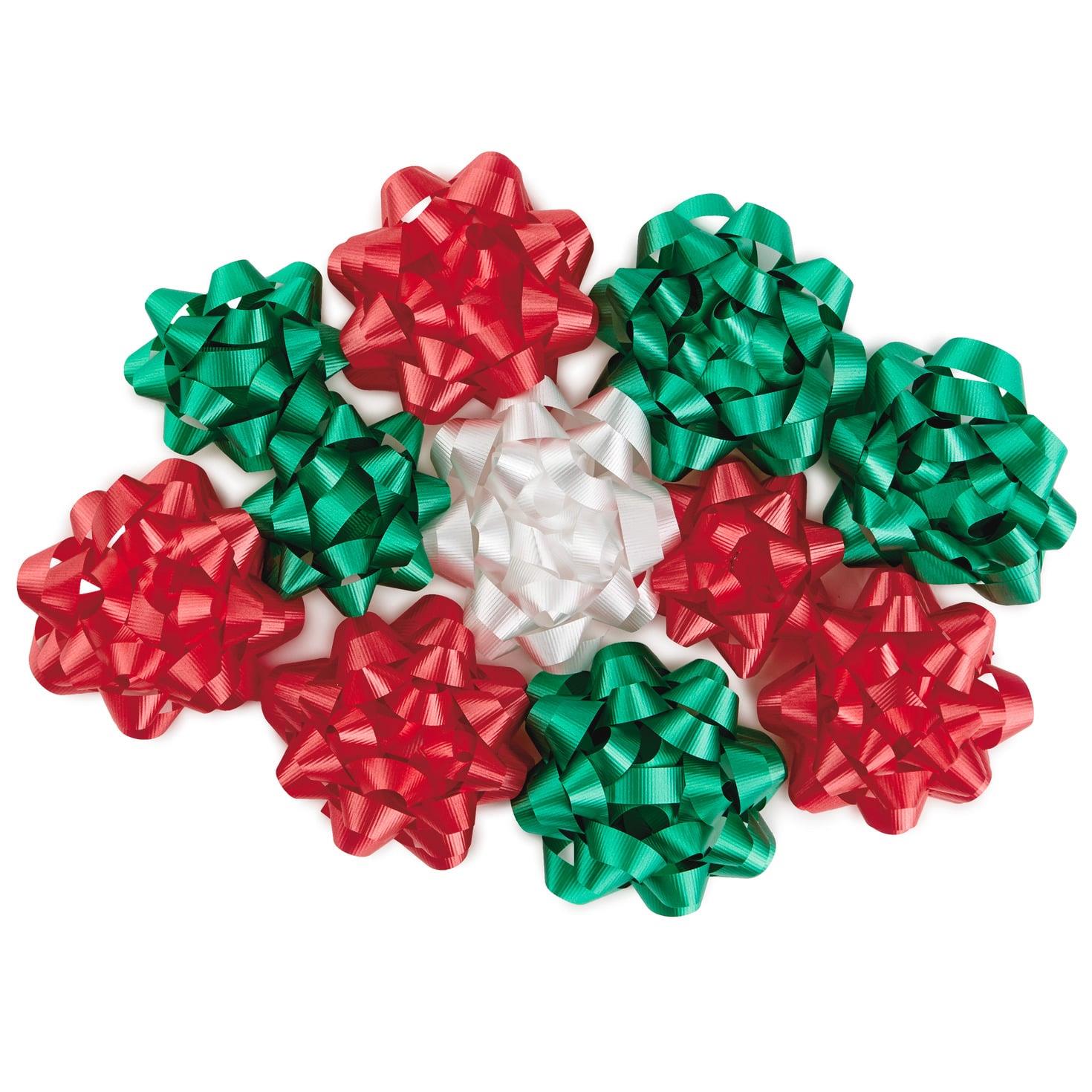 Stock up for the season with this variety pack of classic star bows in an assortment of traditional Christmas colors: red, green and white. Includes ten gift bows with convenient peel-and-stick adhesive backing.
