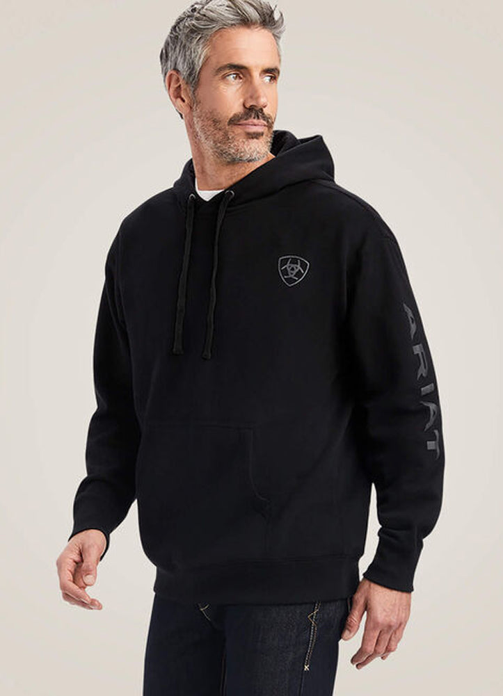 Designed for comfort and everyday wear, this Ariat hoodie features a bold sleeve logo, soft fleece fabric, and a roomy kangaroo pocket for casual style that works anywhere.