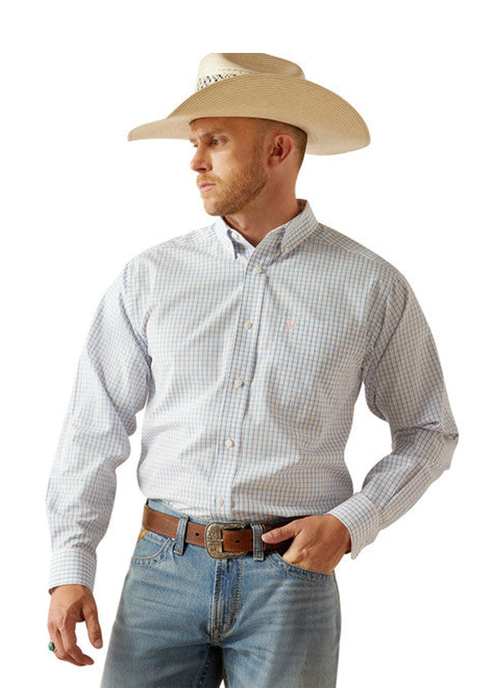 Crisp, clean, and cowboy-approved — this classic long-sleeve shirt features a refined blue grid check, button-down collar, and durable construction that's ready for the ranch or a night out.