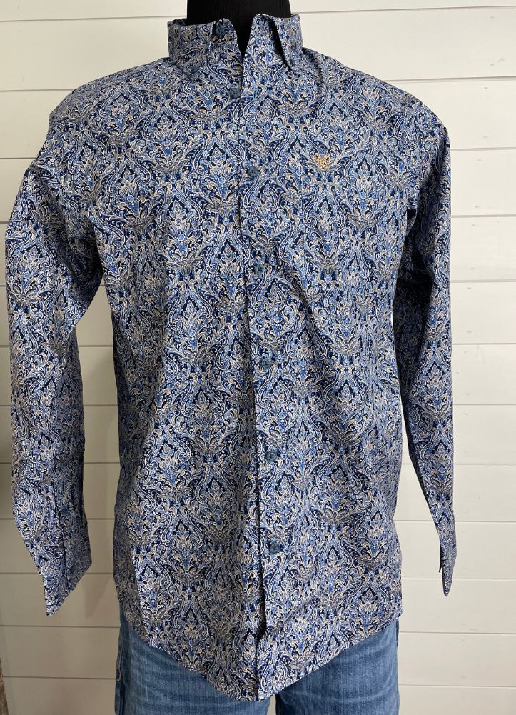 Make a bold statement with this blue paisley print button-down shirt, featuring a stylish design, sharp collar, and comfortable fit perfect for elevating casual or dressy looks.