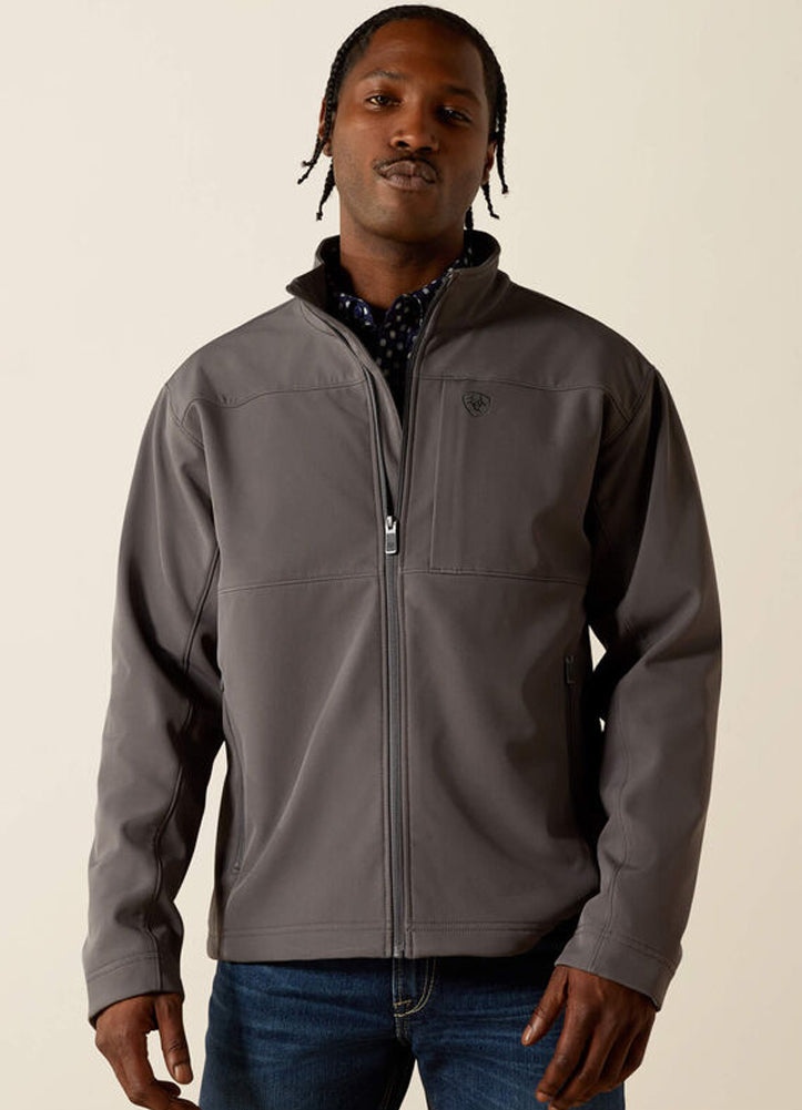 This men's Ariat jacket in sleek gray delivers comfort, durability, and versatility with its softshell design, full zip front, and zippered pockets. Perfect for layering, it combines a clean modern look with rugged functionality for everyday wear.