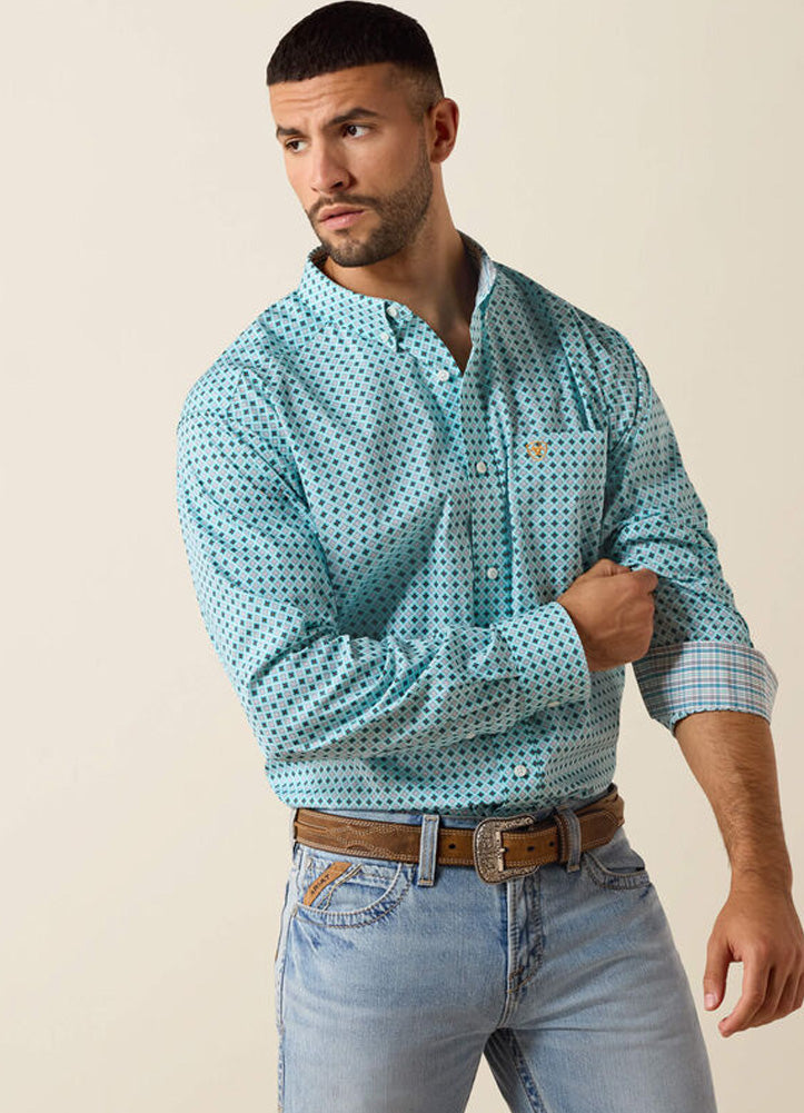 WF Ariat Geo Print LS Shirt in Angle Blue Geo Print by Ariat