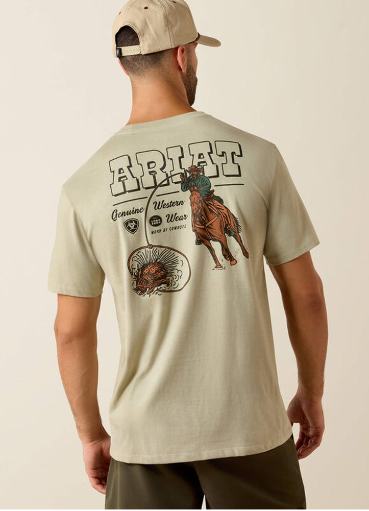 Made for those who live and breathe western tradition, this short-sleeve graphic tee delivers all-day comfort with standout style. Crafted from a soft, breathable fabric, it features a relaxed fit that's easy to wear on its own or layered. The back showcases a bold, vintage-inspired Ariat graphic with classic rodeo imagery and western lettering, adding authentic character and heritage appeal. Finished with a clean front for versatility, this tee pairs perfectly with jeans, boots, or casual workwear for an effortlessly rugged look.
