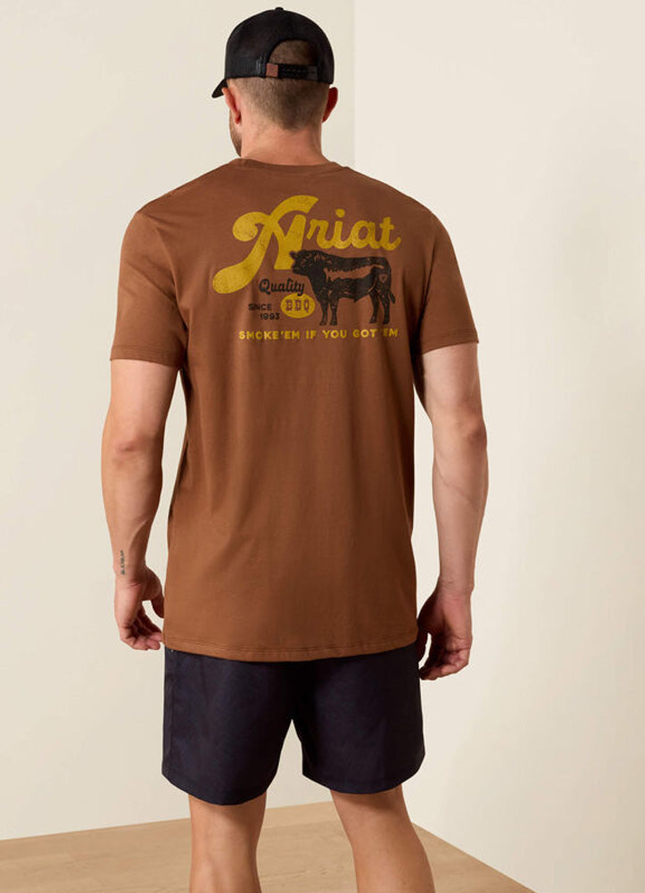 Classic comfort meets bold western attitude in this short-sleeve graphic tee. Crafted from a soft, breathable fabric with an easy, relaxed fit, it's built for all-day wear whether you're working hard or kicking back. The back features a vintage-inspired Ariat graphic with rustic lettering and iconic western imagery, delivering standout style with authentic heritage appeal. Finished with a clean front for versatile styling, this tee pairs effortlessly with denim, boots, or shorts for a laid-back, rugged look that never goes out of style.