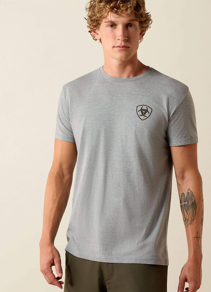 Built for everyday wear with classic Ariat attitude. This short-sleeve graphic tee features a soft, breathable fabric, a comfortable athletic fit, and a clean chest logo paired with a bold Western-inspired graphic across the back. Easy to wear on its own or layered, it's a go-to choice for workdays, weekends, and laid-back outdoor living.