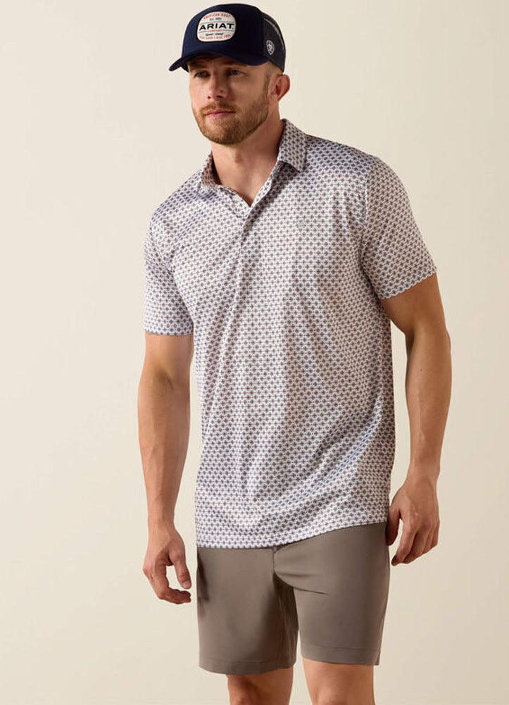 All Over Print SS Polo in White Multi by Ariat