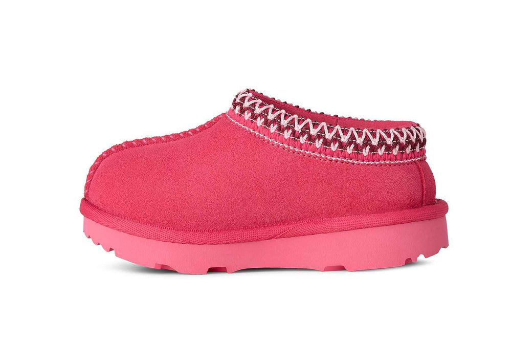 Bright and cozy children's slip-on boots in vibrant pink suede, featuring soft lining and fun stitched details for warmth, comfort, and playful style.