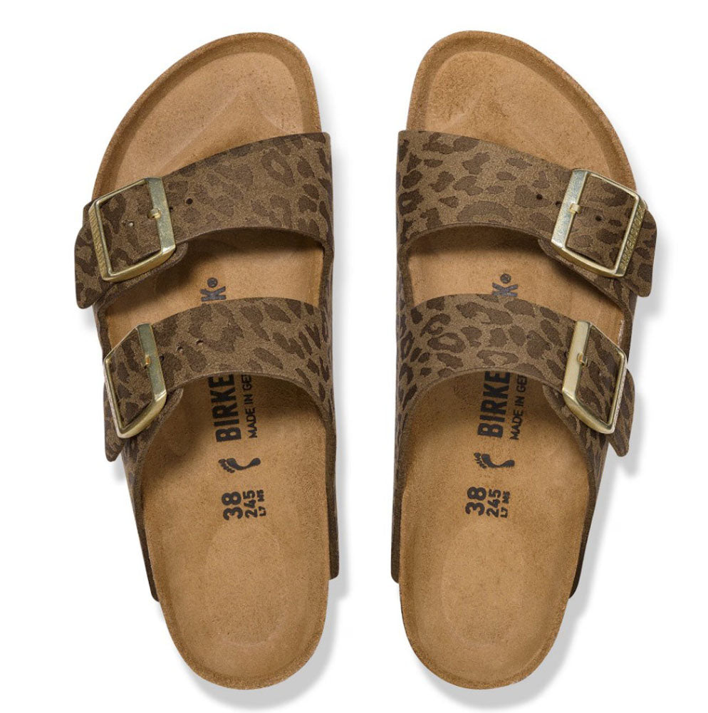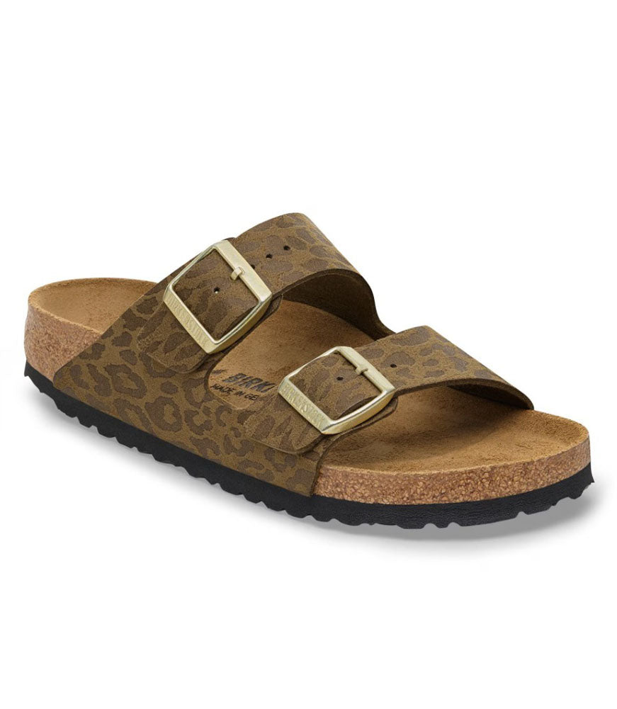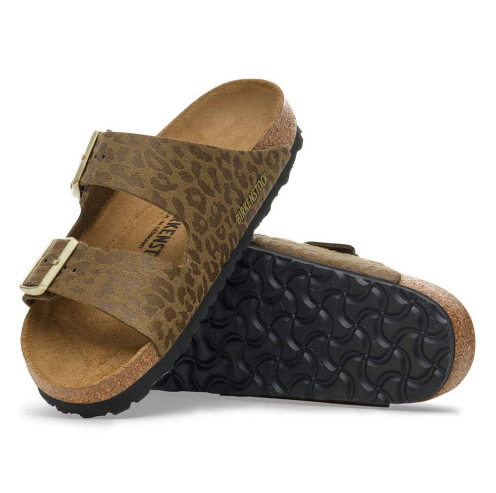 Add a bold touch to your footwear collection with these Birkenstock sandals, featuring a chic leopard print design on soft suede straps. The classic two strap silhouette with adjustable metal buckles offers a secure, personalized fit, while the contoured cork latex footbed provides legendary Birkenstock comfort and support. Designed to mold to the shape of your foot, they ensure all day ease and proper alignment. The lightweight EVA sole adds flexibility and cushioning, making them perfect for daily wear. Stylish yet practical, these sandals pair effortlessly with casual outfits, bringing together timeless comfort and modern flair for a standout addition to your wardrobe.