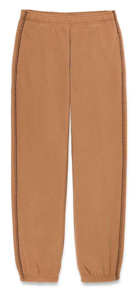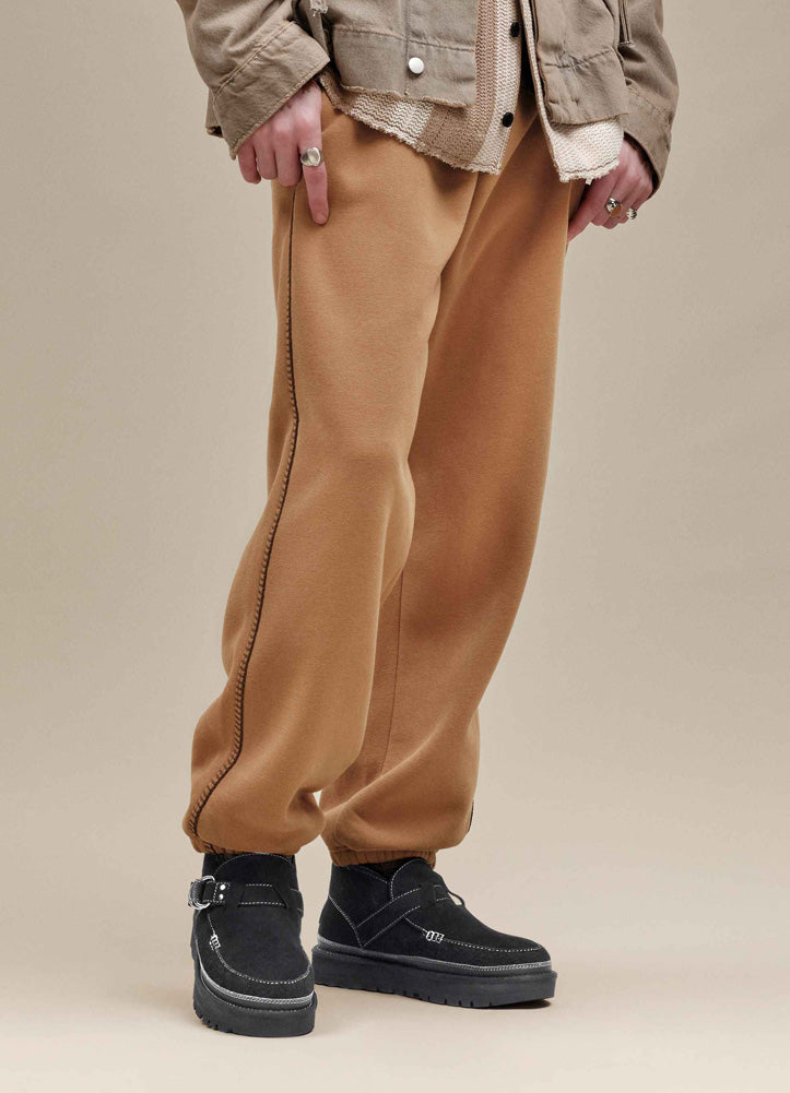 Cozy and stylish jogger pants in warm chestnut brown, featuring elastic cuffs and stitched seam details for a relaxed yet refined everyday look.