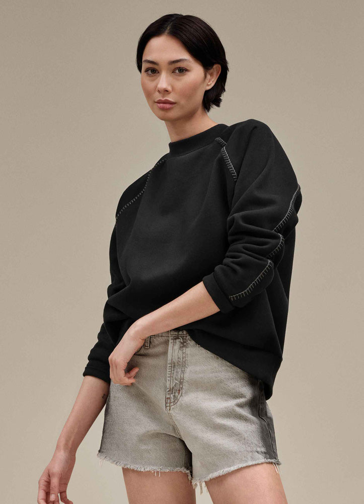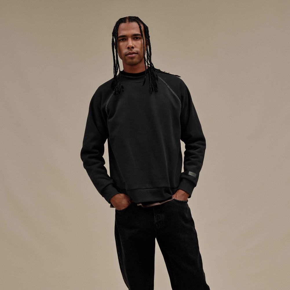 This classic black crewneck sweatshirt combines simplicity with style, featuring subtle stitched detailing and ribbed cuffs for a refined finish. Made from soft, cozy fabric, it offers all-day comfort and versatility—perfect for layering or wearing on its own for a sleek, modern look.