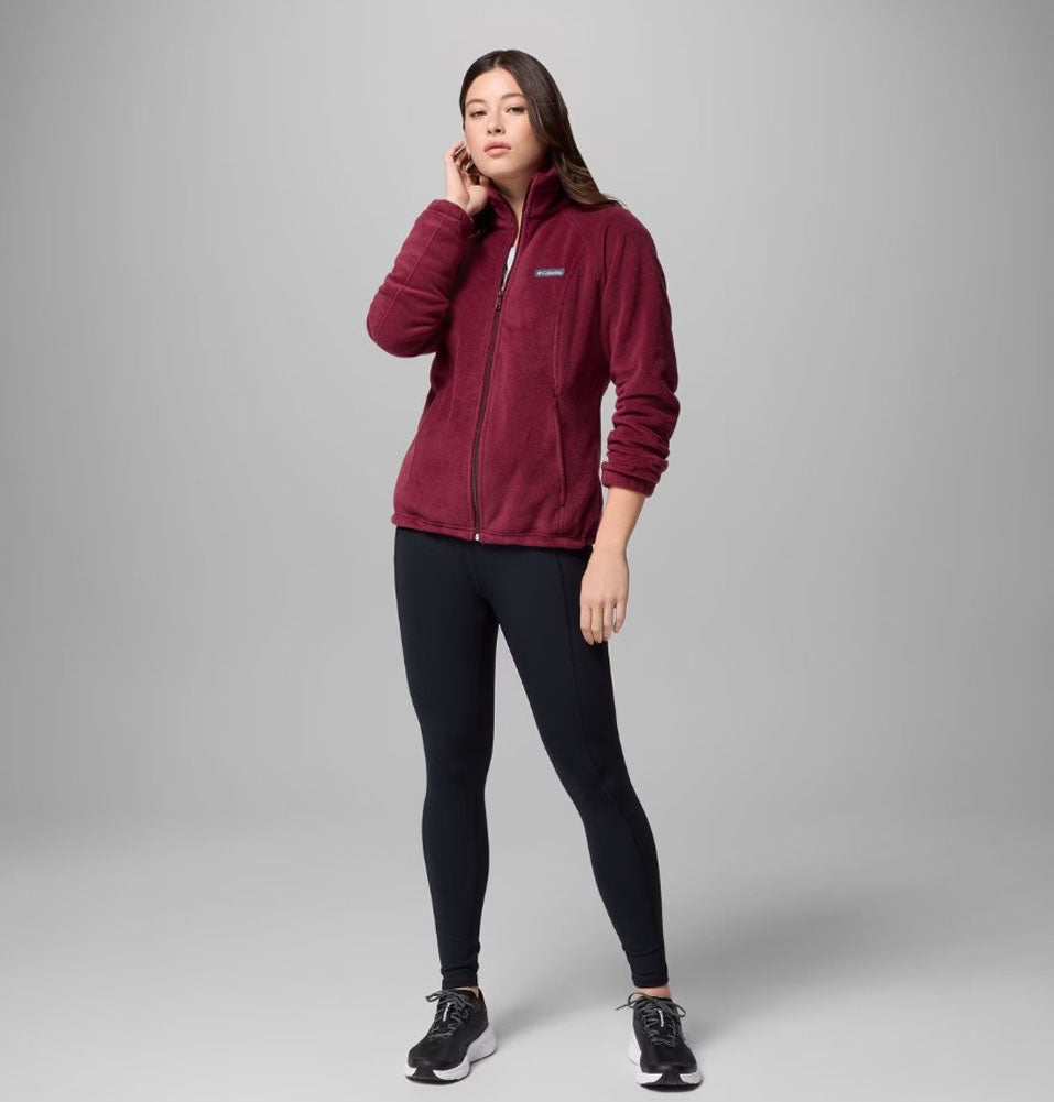 This cozy full-zip fleece jacket delivers effortless warmth and everyday versatility, featuring a rich burgundy hue, soft fabric, and a high collar for added comfort perfect for layering on chilly days whether you're heading outdoors or relaxing in casual style.