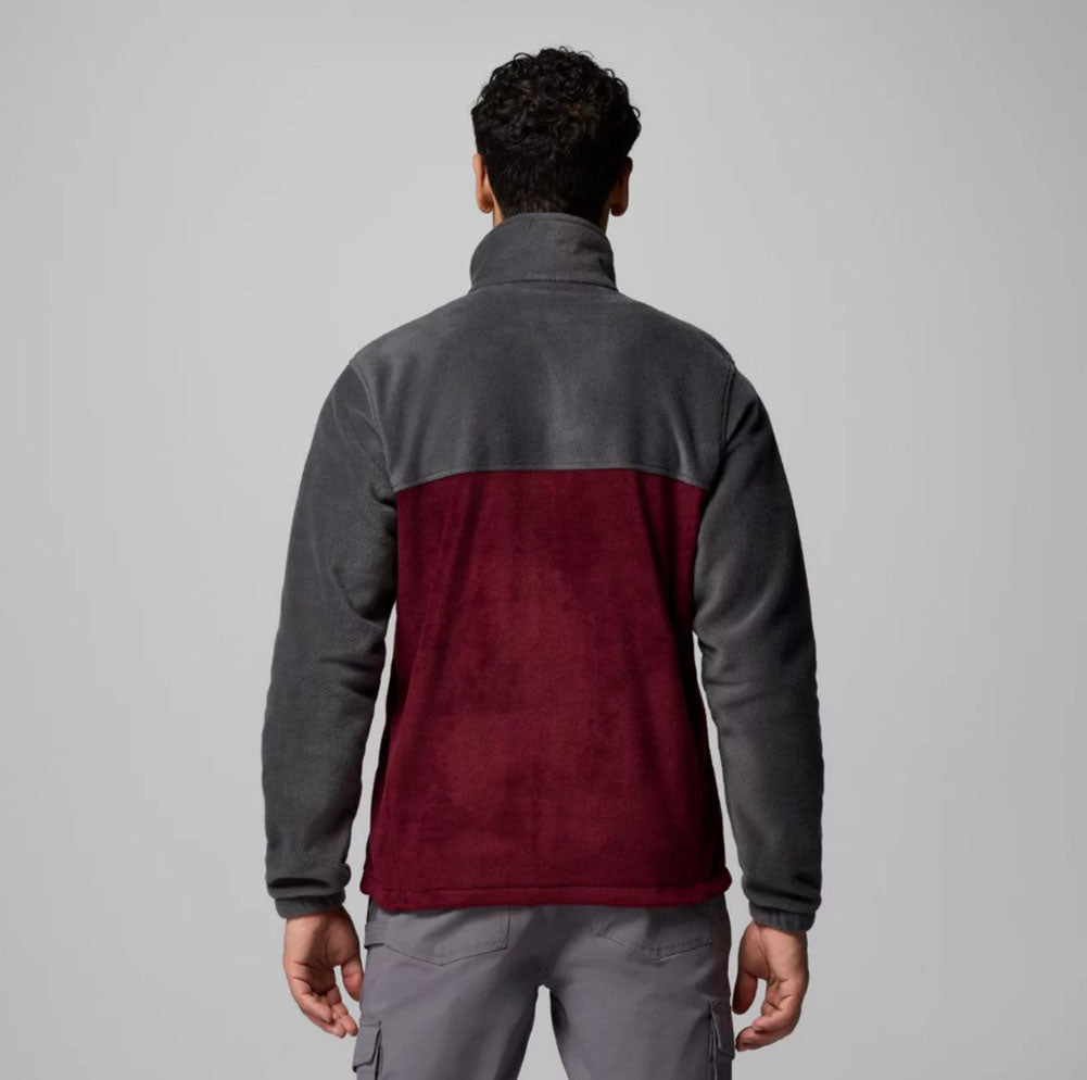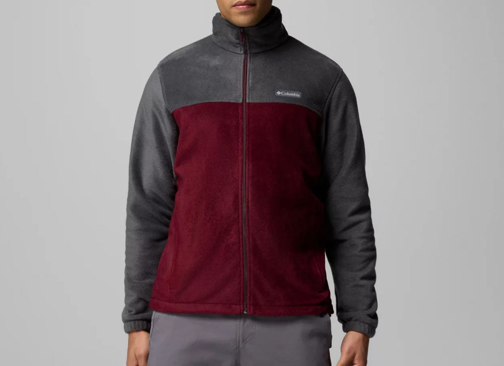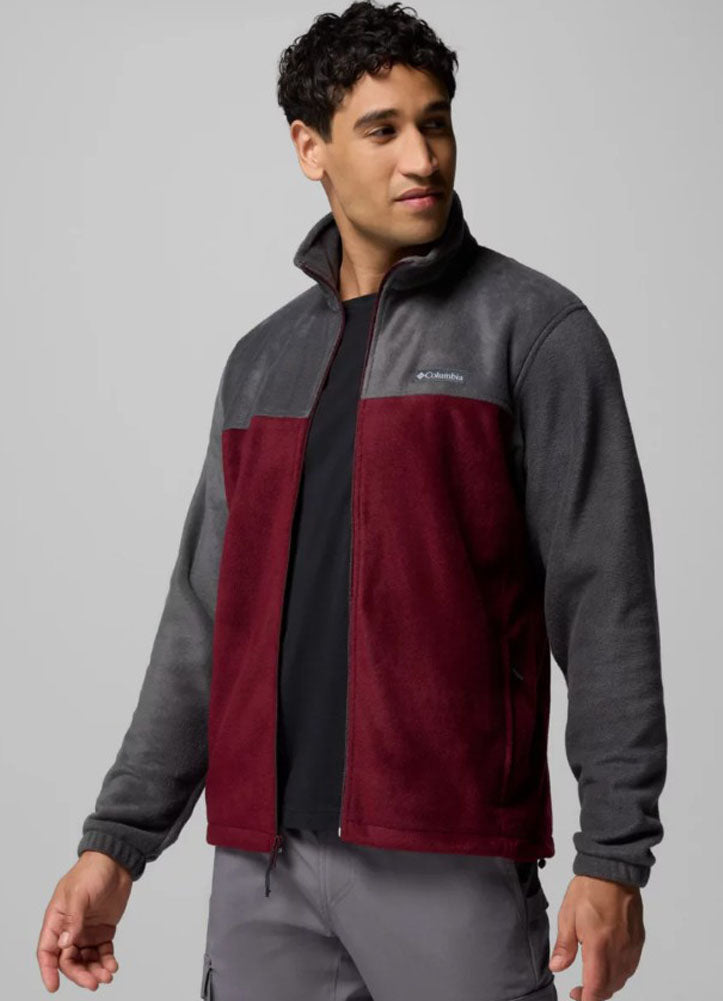 Stay warm and versatile with the Columbia Men's Full-Zip Fleece Jacket in a two-tone burgundy and charcoal design, crafted with soft fabric, functional pockets, and a modern fit perfect for layering on outdoor adventures or casual days.