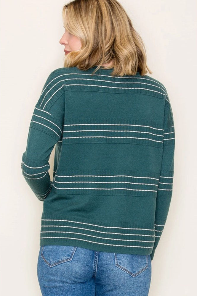 Stitch Striped LS Pullover in Dark Jade by Staccato