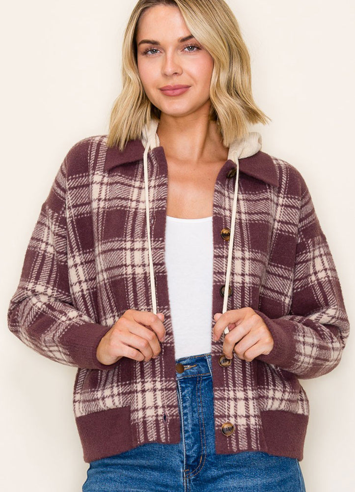 Layer up in cozy charm with this brown plaid button-up jacket, featuring a soft textured fabric, relaxed fit, and classic collared design. Perfect for adding warmth and timeless style to your everyday look.