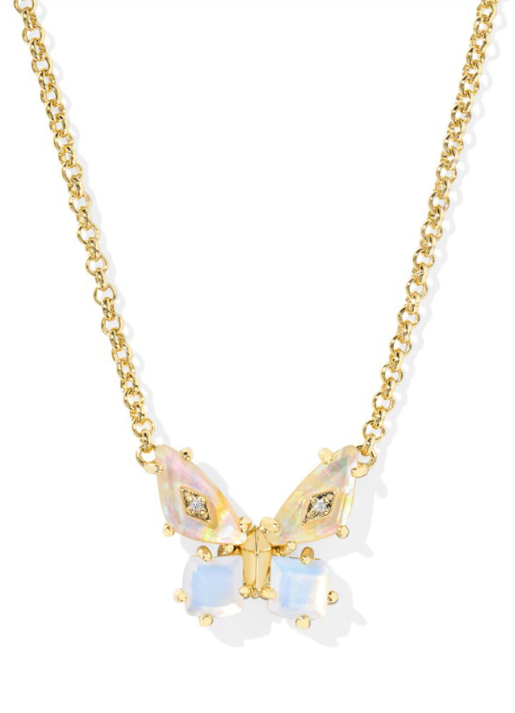 Bianca Butterfly Pendant Necklace Gold Irridescent White Mix by Kendra Scott