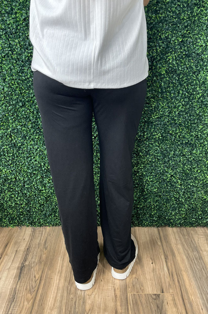 These versatile black pull-on pants feature a comfortable straight-leg silhouette with a smooth, stretchy fabric that moves with you. Designed with functional pockets and a clean, polished look, they're perfect for everyday wear, workdays, or casual outings when comfort and style both matter.