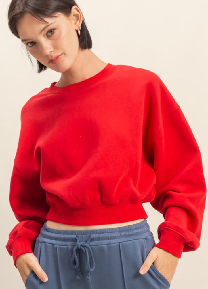 Everyday LS Cropped Sweatshirt in Red by Hyfve