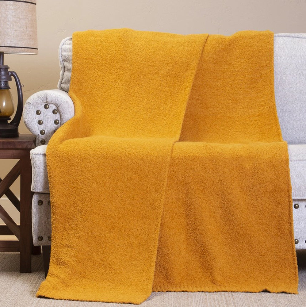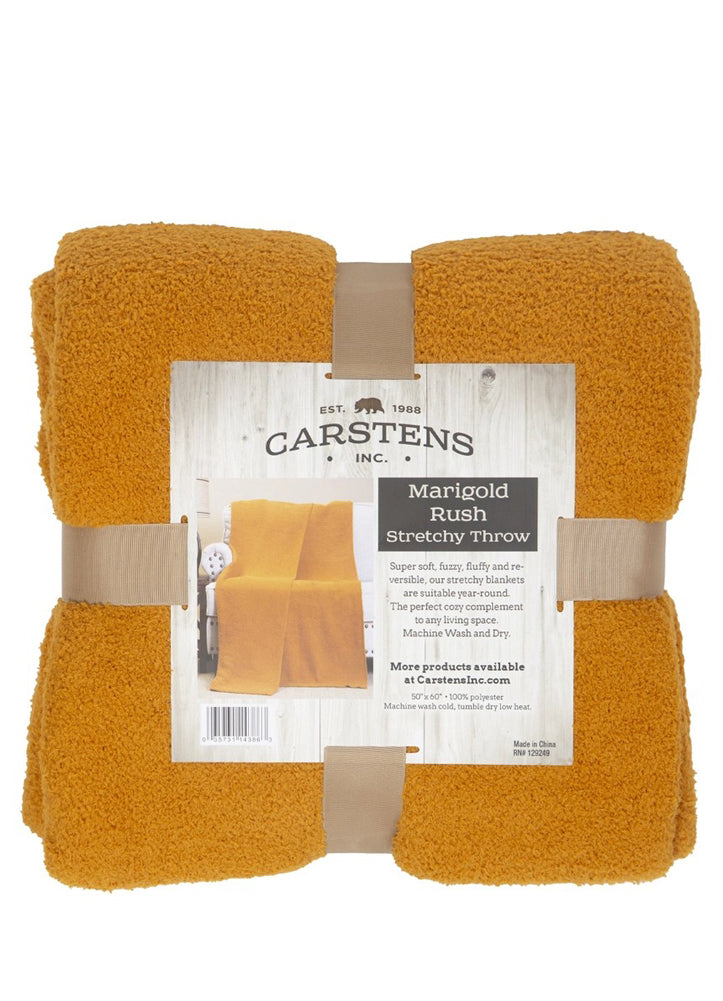 Wrap yourself in warmth with the Marigold Rush Stretchy Throw by Carstens. Super soft, fluffy, and irresistibly fuzzy, this reversible blanket adds a bold pop of sunshine to any space. Its stretchy, cozy texture makes it the perfect snuggle companion for all seasons.