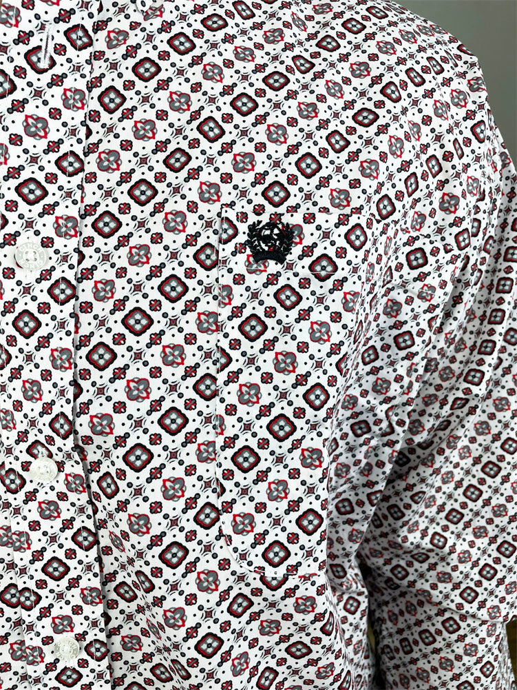 LS Print Button Up in White by Cinch