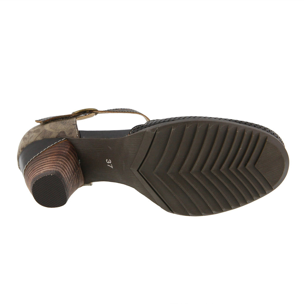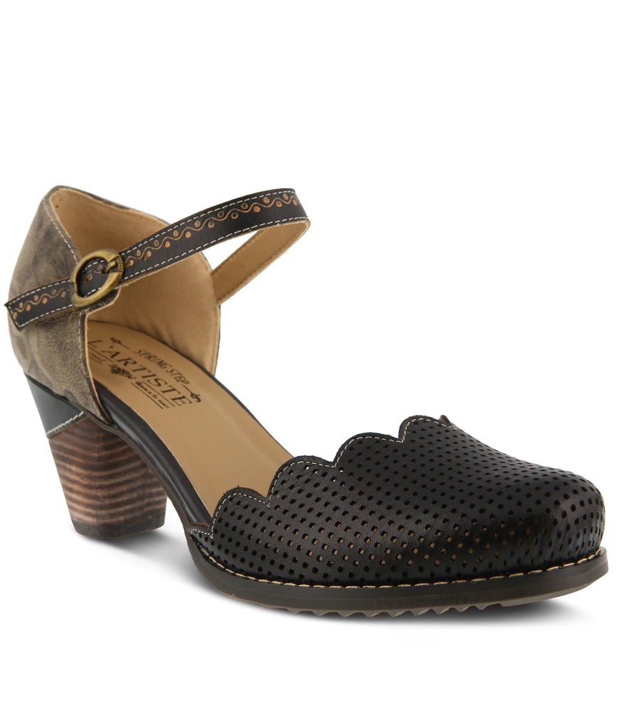We have received this new closed toe heel in the style Parchelle from L'Artiste. This shoe comes in the color Black Multi and features a small ankle strap.