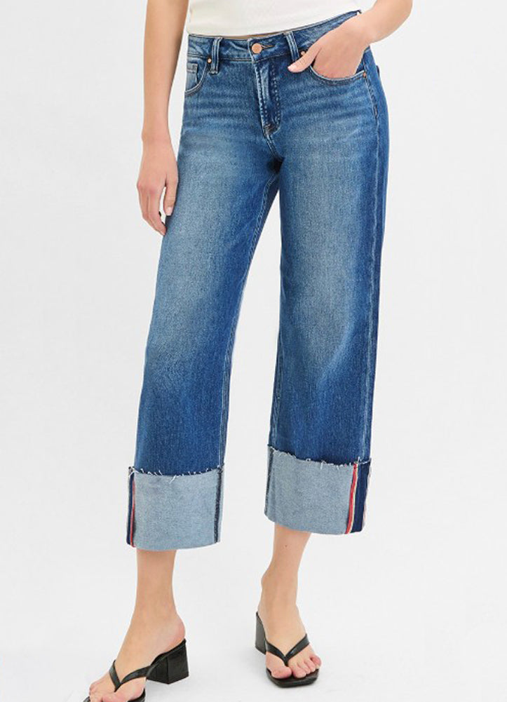 MR Crop Wide Cuff Jeans in Dark by Risen