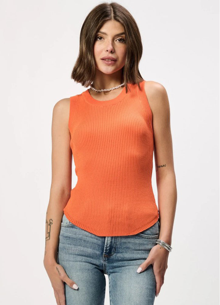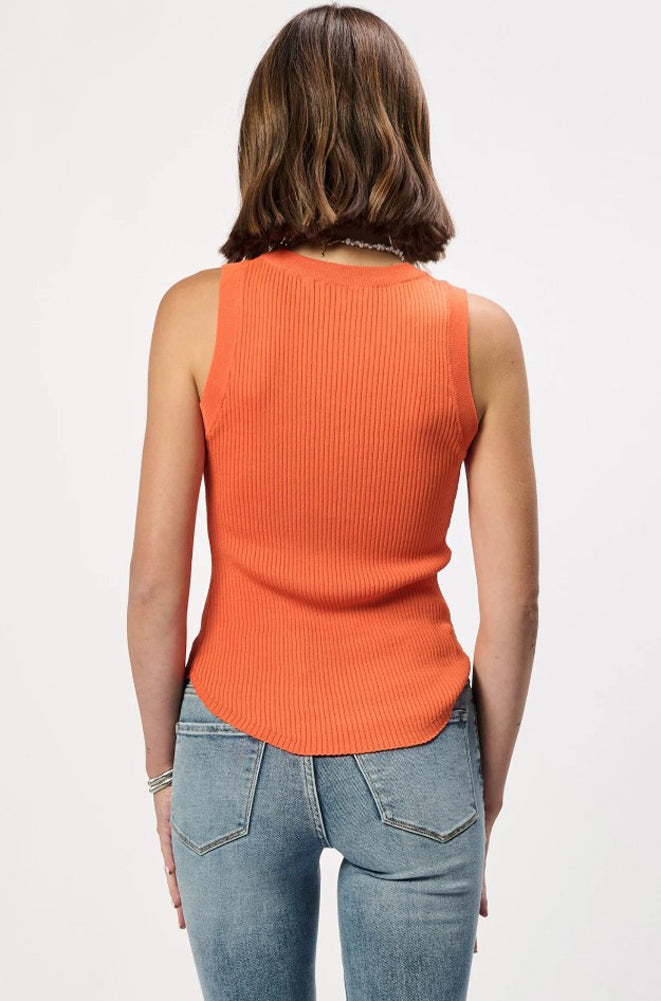 The Cora top in Persimmon by Another Love is the perfect tank for spring and summer. This top features a ribbed texture, rounded neckline and hemline.