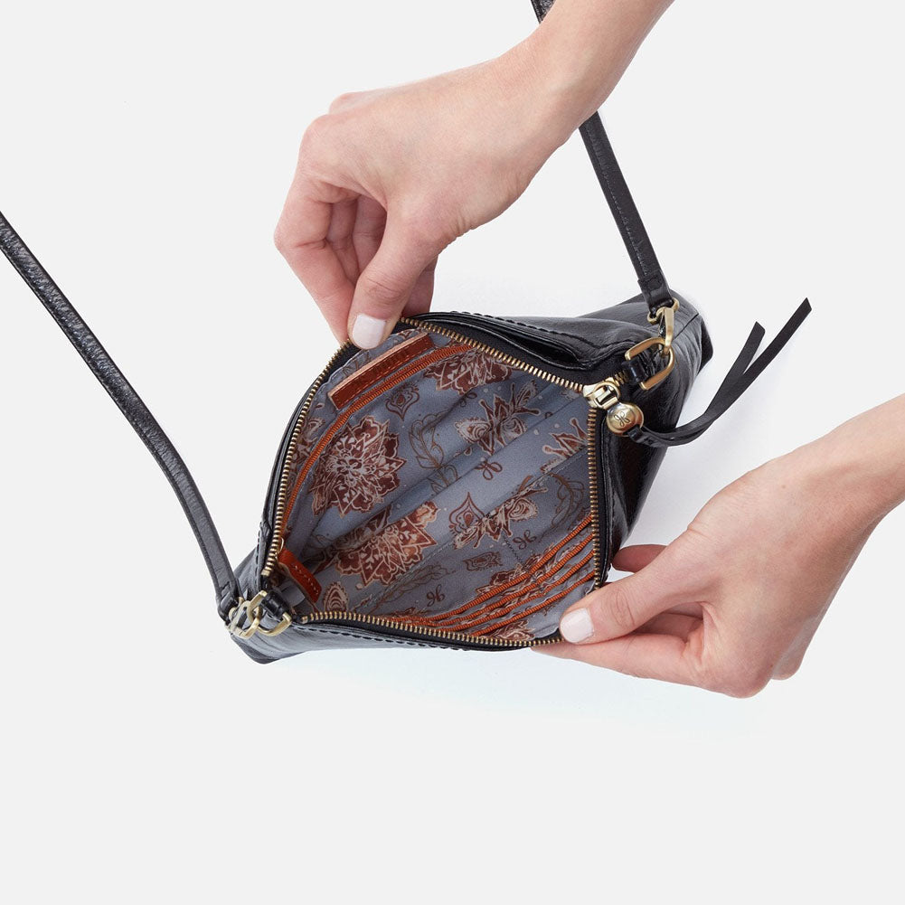 The perfect purse for all of your necessities! This was brought to us from Hobo and features card slots built into the purse. It also has an outside pocket for your phone.